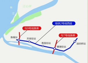 动态:2号线西延工程线路起自鱼嘴地区,下穿平良大街后与已运营2号线连通。线路全长5.4公里,其中地面段0.2公里,地下段5.2公里。全程共设站4座,即鱼嘴站、天保街站、青莲街站和螺塘街站,全部为地下站,平均站间距为1.35公里,其中换乘站2座。