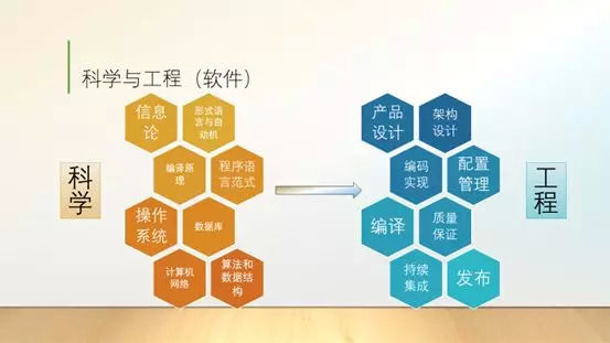 首先我们讲一下计算机科学与计算机工程的分别:什么是计算机科学,计算机科学是学校里、象牙塔里的东西。计算机工程是工业界,是你从一个学校到一个公司,应该掌握和学习的东西。计算机工程包含什么呢?