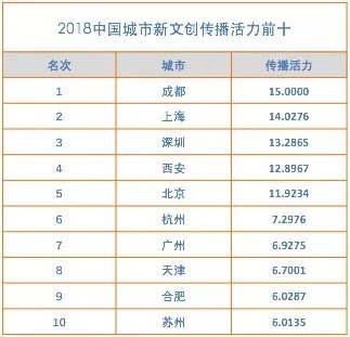 7月17日,由腾讯研究院、标准排名城市研究院共同主办的“新文创·新动能”2018新文创产业峰会在成都举办。峰会发布了全国首个新文创市城排行榜单——《中国城市新文创活力指数排行》,引发媒体热议。在这个榜单中,被誉为天府之国的成都以90.6分超越北京,在100个城市样本中脱颖而出,名列榜单首位。