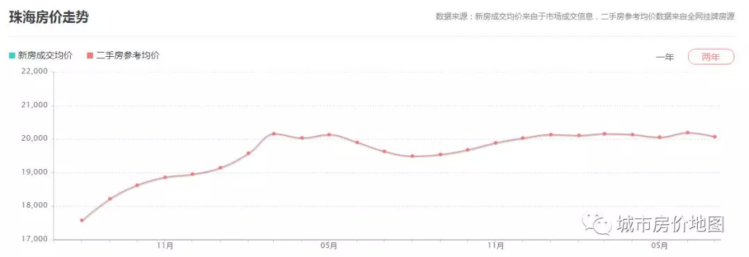来自房天下查房价网的数据显示,7月珠海二手房参考挂牌均价为20065元/㎡,环比下跌0.60%,同比上涨2.23%。从上述珠海近2年房价走势图可以看出,去年4月以来,珠海疯涨的房价得到了很好的抑制,至去年9月达到阶段性低位,今年以来保持横盘走势,整体房价较为稳定。