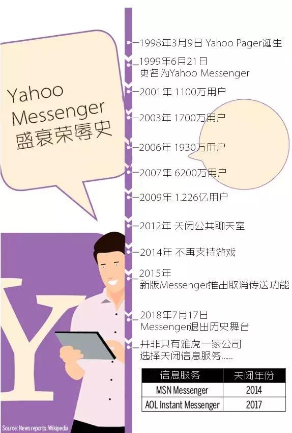 7月17日,即时通讯软件雅虎Messenger按照规定宣布关停服务,正式退出历史舞台。