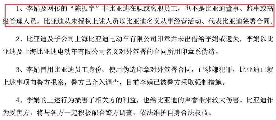 NBD:比亚迪在声明中称,李娟冒用比亚迪高管身份开展业务,涉嫌伪造公司印章罪及合同诈骗罪,此前,你有注意到李娟与比亚迪相关联系吗?