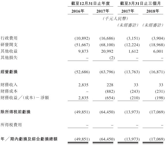 截至2016年及2017年12月31日止年度以及截至2018年3月31日止三个月,康希诺生物净亏损49.9百万元人民币、64.5百万元人民币及17.1百万元人民币。共计约1.32亿元人民币。