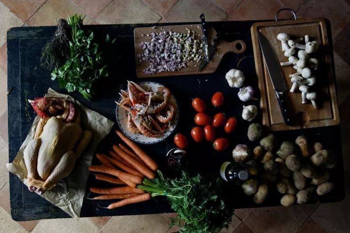 Poulet Marengo是法餐中最著名的小龙虾菜式,最初是为拿破仑定制的一道菜。当时,拿破仑在马仑哥战役中战胜奥地利帝国军队,随军厨师用当地的鸡肉、小龙虾和白葡萄酒为他做了这道烩菜。后来,拿破仑只要打了胜仗,就一定会吃Poulet Marengo,绝不改变。