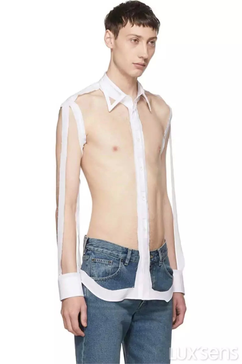 先表明下个人立场。对 MMM 小编一直是心生敬畏,不敢亵渎的。但是这件衬衫,真的...非礼勿视,非礼勿视。传说中的极简主义,非它莫属了。