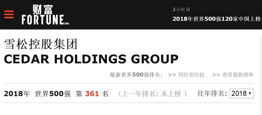 《财富》中文网官方网站公布的信息显示,雪松控股2017年营业收入达到327.1亿美元,比上年增长38.4%;资产规模达到207.38亿美元,员工总数31065人。