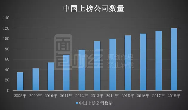 今年中国上榜公司达到了120家(上年为115家),已经非常接近美国(126家),远超第三位的日本(52家)。
