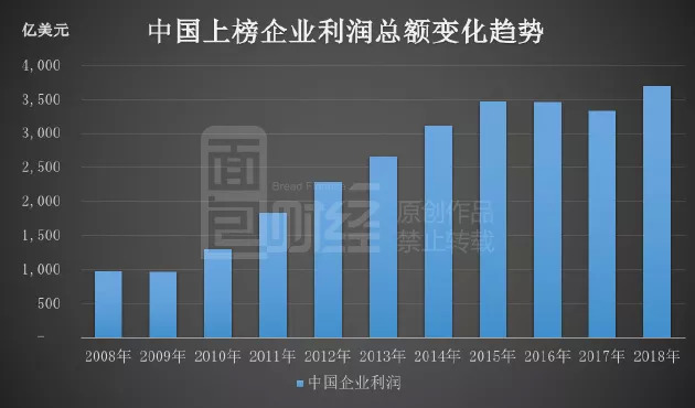 《财富》世界500强主要根据公司营收规模进行排名,不过公布营收的同时,也公布了上榜企业的利润。从利润来看,在经济增速放缓的背景之下,中国2016年及2017年上榜企业利润总和有所下降,于2018年开始回升,并创下3687亿美元的新记录。