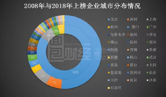 以下为2008年与2018年内地各城市上榜企业数量对比: