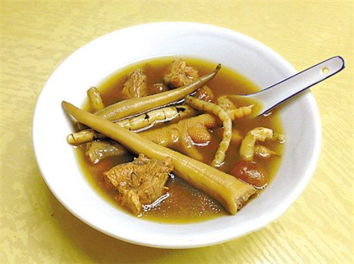 地参20克,象拨蚌干8—10条,鸡脚6只,瘦肉400克,元肉10粒,姜3片。