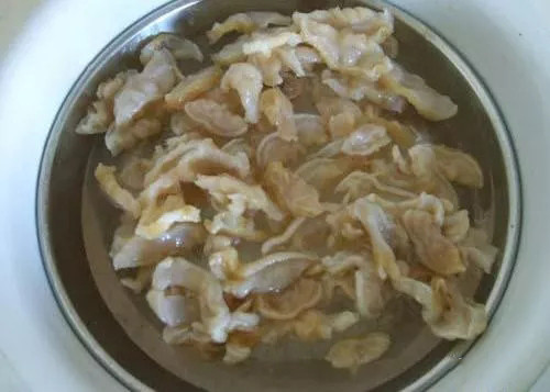 2、等象拔蚌干发胀后的体积比原来大1倍左右,用手按下去感觉肉质变软时就可以了。
