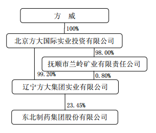 由此,辽宁方大持股第一,成为东北制药的第一大股东,东北制药也相应变更了控股股东及实际控制人。辽宁方大注册资本10亿元,成立时间为2000年4月24日,法定代表人方威现任北京方大国际实业投资有限公司董事长、辽宁方大集团实业有限公司董事局主席,现还为方大炭素和方大特钢的实际控制人。