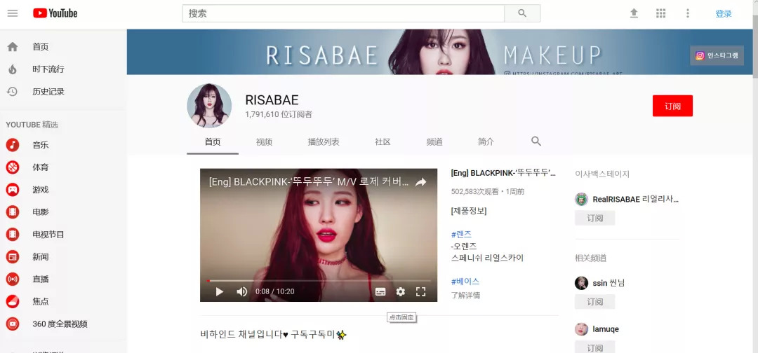△Risabae的Youtube频道页面