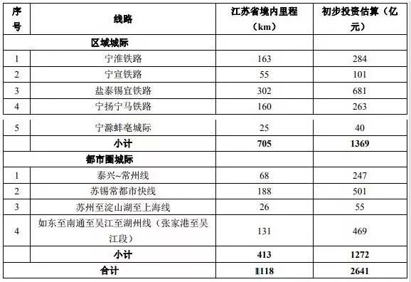 根据《江苏省沿江城市群城际轨道交通建设规划(2018-2025年)》,加快南京辐射沿江其他市及苏北、皖南的区域城际轨道建设,形成以南京为中心向外放射的轨道交通网。重点建设服务南京都市圈、苏锡常都市圈同城化的线路,支撑“0.5-1”小时通勤圈构建。
