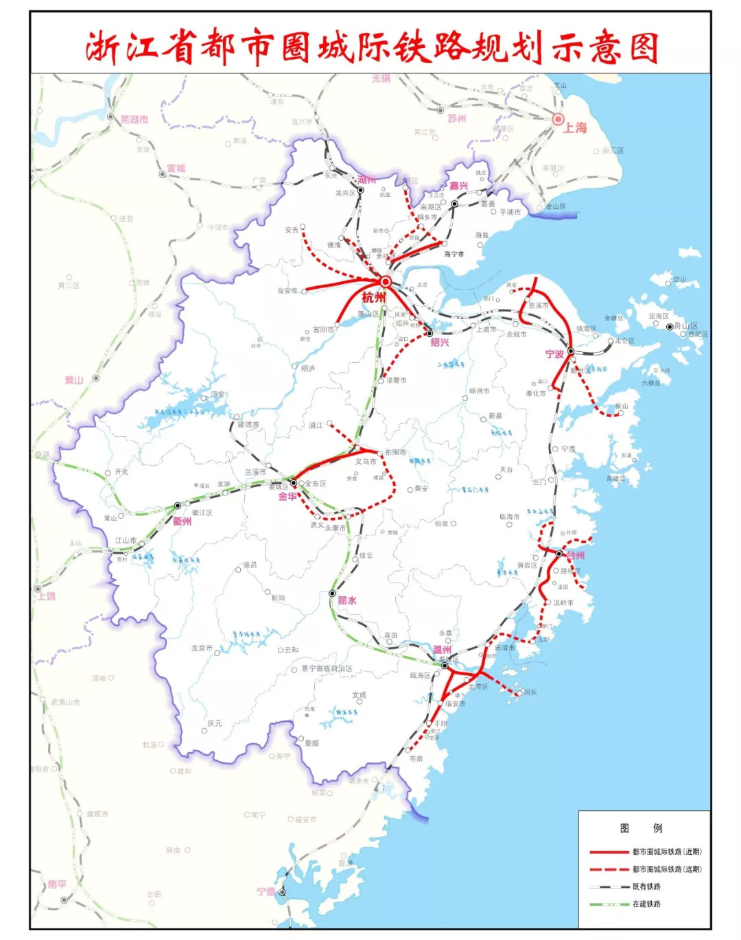 浙江省的都市圈城际铁路网: