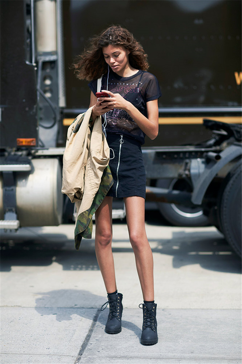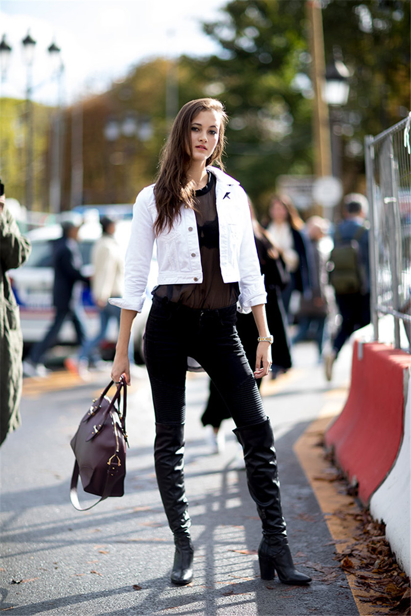 另一种常见的秀内衣方法大多常见于国外的明星街拍,比如超模Sara Sampaio就曾穿着黑色的薄纱透视装搭配牛仔裤,小性感风里由有几分活力。