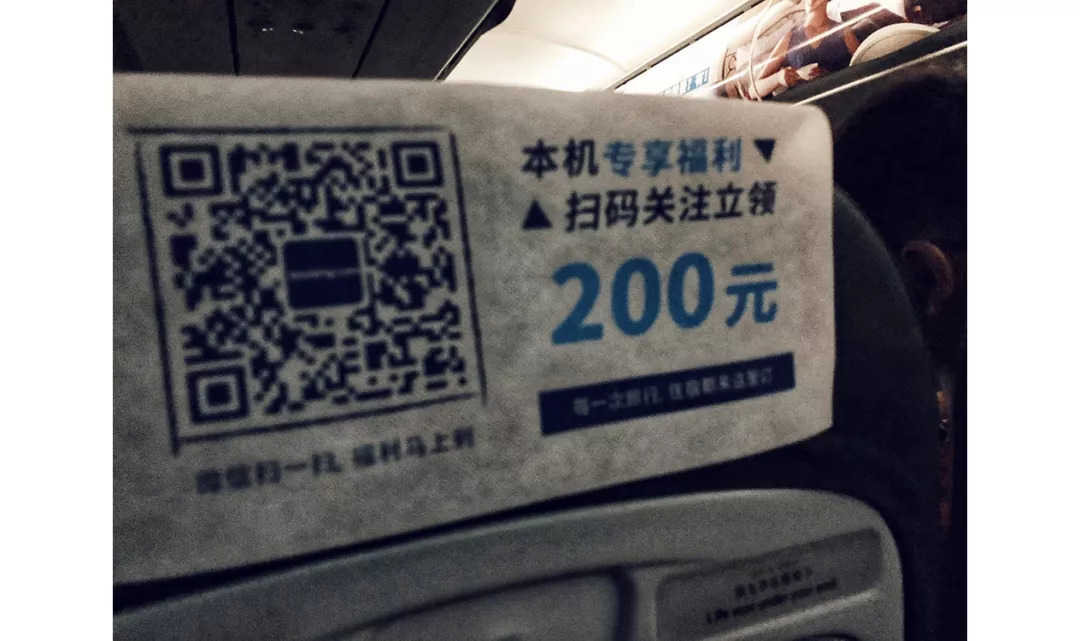 登机之后,细心的大饼子还发现啊,不止是内外饰不同,乘客还有专属特权,飞机上的二维码扫一扫,在成功预订住宿并完成入住后,可以享受200rmb的返现奖励。