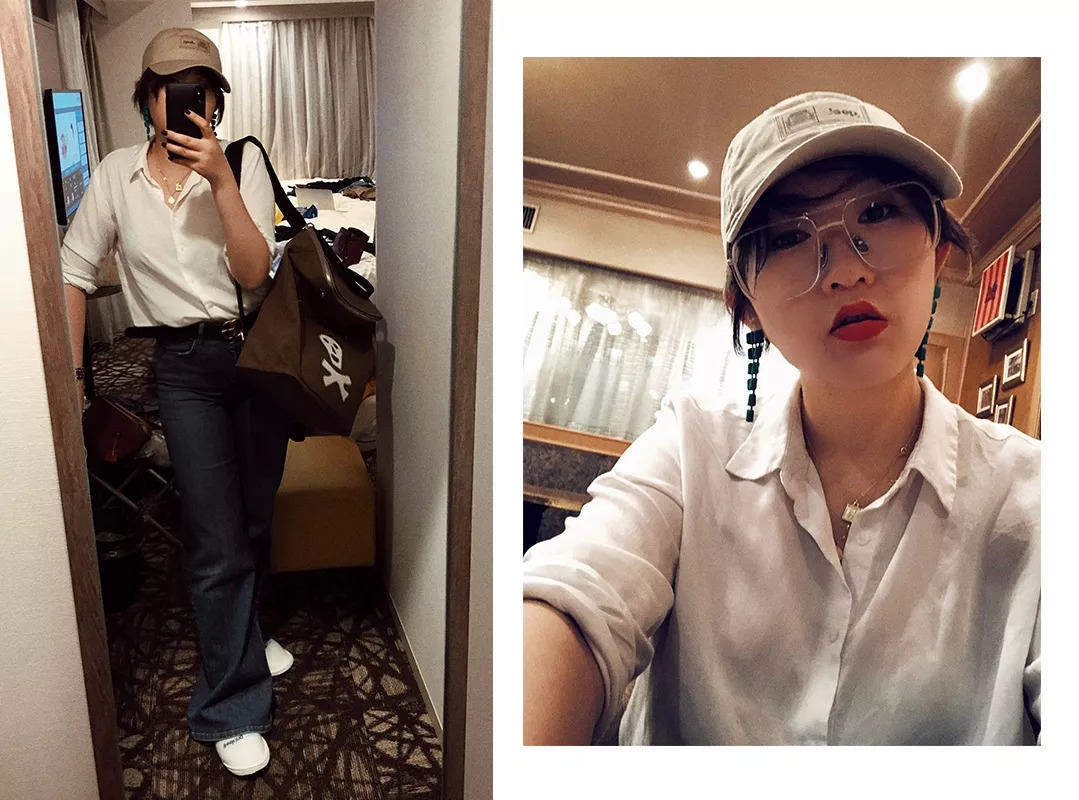 衬衫、购物袋:优衣库;裙子:Mango;sneakers:Y-3;耳环:vintage