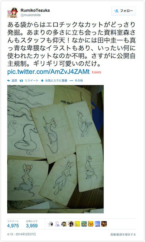 此前留美子在Twitter上向大家报告,她从父亲手冢治虫晚年时期位于埼玉县新座市的工作室里发现了了不得的东西!那就是——一大波让人脸红的工口漫画!