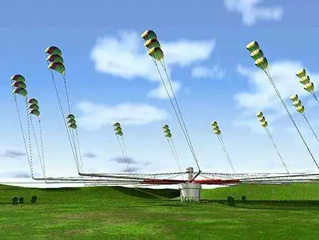 真正的风筝发电则源于上世纪80年代。美国科学家劳埃德提出了“风筝发电”的概念,其有四个要点:气流、风筝、绳索、卷扬机。当风筝垂直于气流的时候,其拉动绳索来驱动地面的卷扬机发电;当风筝与气流平行的时候,卷扬机再把风筝倒拉回来。以此往复,产生电能。
