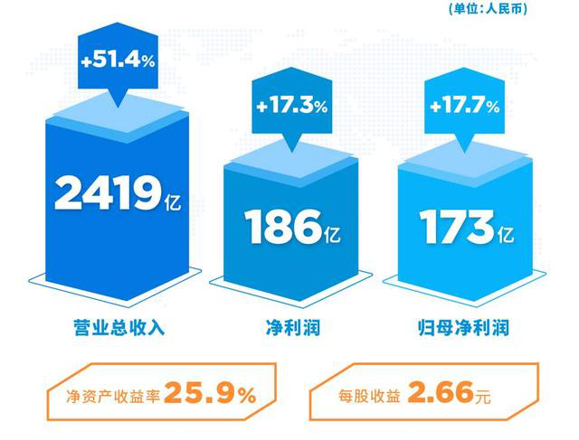 2017年,美的集团实现营收2419.19亿,较2016年1590.44亿元增长51.35%,相对应的是美的集团世界500强排名显著变化。
