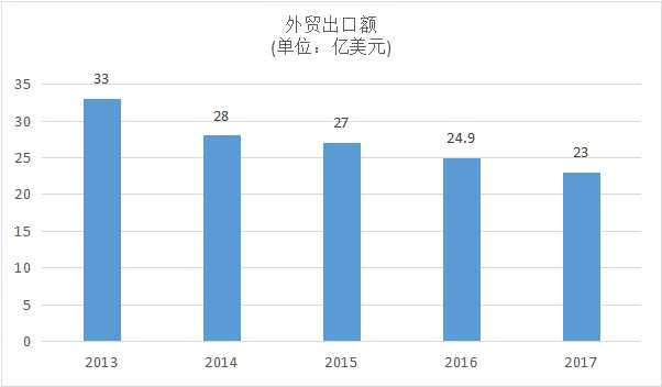 边城丹东的跨境贸易近几年也呈萎缩趋势,以下图外贸出口额为例,萎缩之态一目了然。
