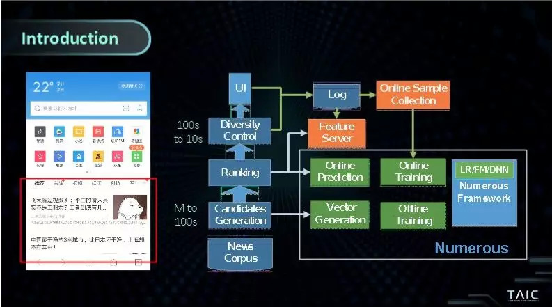 腾讯有 18-19% 的盈利依赖广告收入,根据公司第一季财报显示,这一部分的收入还在持续增长。网页、图文、视频等推荐场景的广告跟模型有很大的指标关系:把模型的 AUC 拉高百分之一,整个点击率就会提升百分之一,对于整个公司来说是亿级收入的提升。