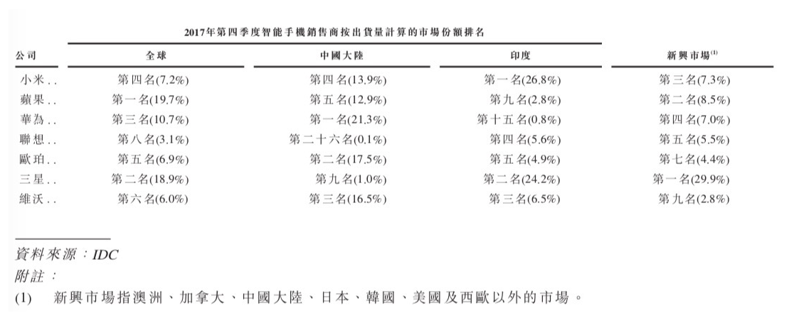 小米在去年第四季度成功超越了三星,拿下了印度市场第一的宝座。小米创始人雷军也在此前发出的《小米是谁,小米为什么而奋斗》公开信中表示,小米智能手机业务已经在印度取得份额第一,并在15个国家名列前茅,“小米正在并将继续证明,小米模式在全球都具有可快速复制的普适性。”在递交的IPO招股书中,小米再次表现出了印度市场在公司全球化过程中的重要性。