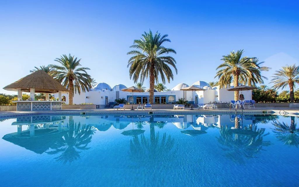 金羚羊五星度假酒店位于阿国东南部靠近突尼斯的沙漠之城瓦德。羚羊是沙漠特有的珍贵动物,沙子在阳光下散发着金色的光芒,酒店的名字便由来以此。看似华丽如宫阙般的酒店背后有着充满正能量的发家史。