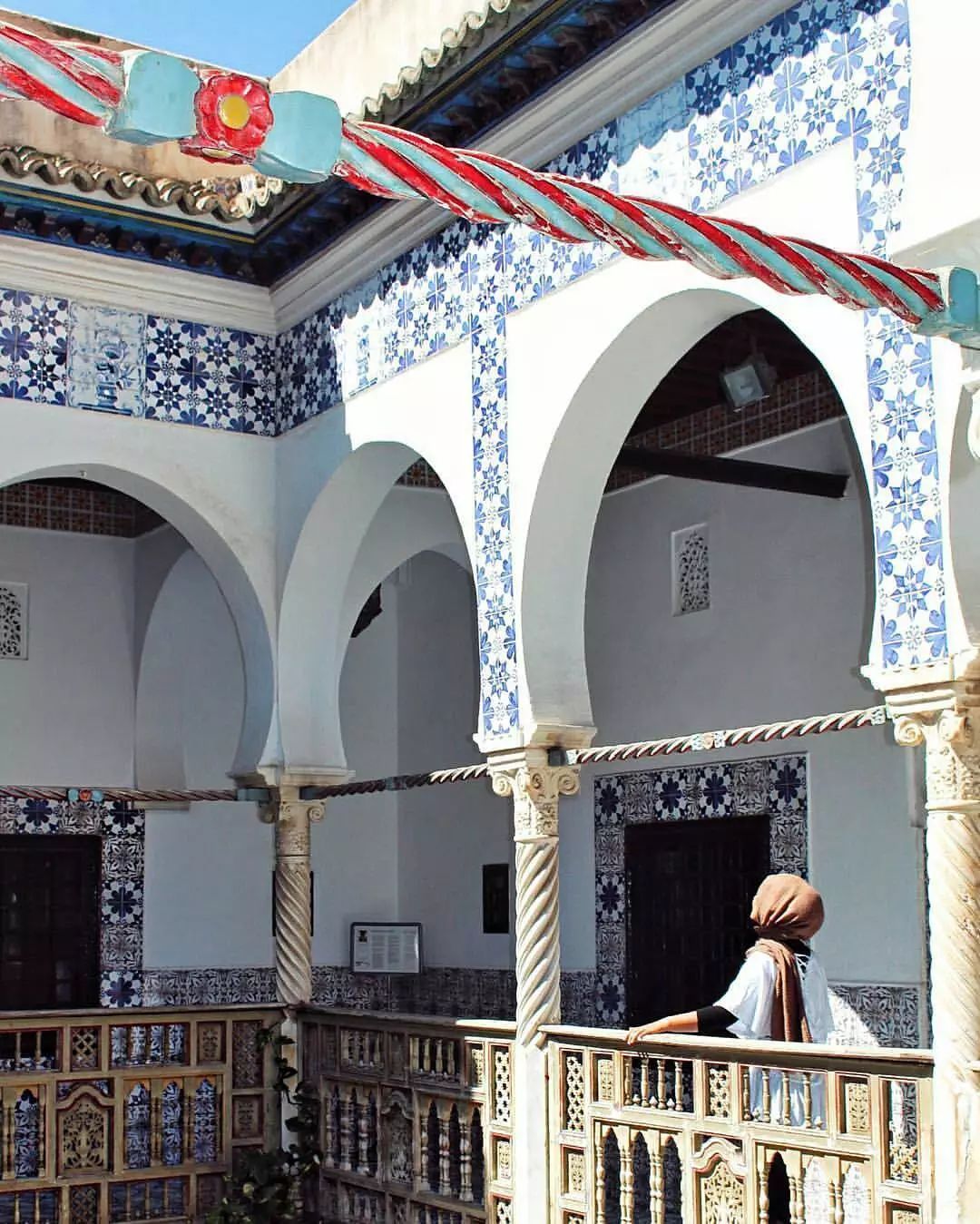 白城内有无数宫殿,大部分都改成了博物馆,均可免费参观。公爵夫人AZIZA的宫邸遂改名为DAR AZIZA府,以其产自意大利和西西里的搪瓷与大理石装点而闻名。蓝白相间的瓷砖、雕花木门与立柱、只见得一方天空的天井……这里分明是摩洛哥作家梅尔尼斯的著作《禁苑·梦》中的灵感地。