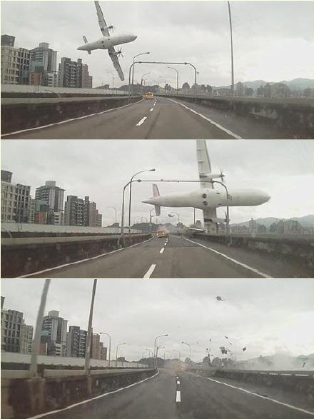台湾《中时电子报》报道,客机在起飞后不到五分钟即因不明原因擦撞到汐止区南阳大桥(台北市、新北交界),机身断成数截坠落基隆河。