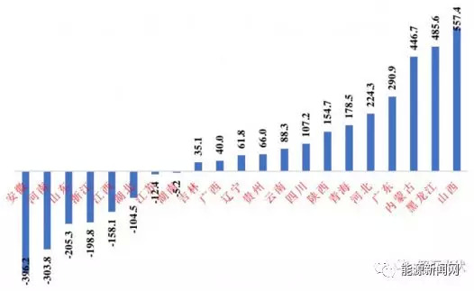 图:21省2018年2月底实际装机规模与2020年规划差值(单位:万kW)