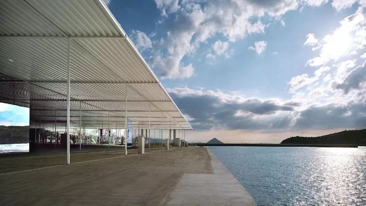 而与西泽共同创立 SANAA 建筑事务所的日本女建筑师妹岛和世也是白色的拥趸。她为直岛设计的“玄关”一般的入口 —— 直岛町客运码头,利用全白的纯净色彩与轻盈的体量将一贯的纤细、灵动感通过全钢材质的结构传递给每一位踏上这片小岛的旅客。