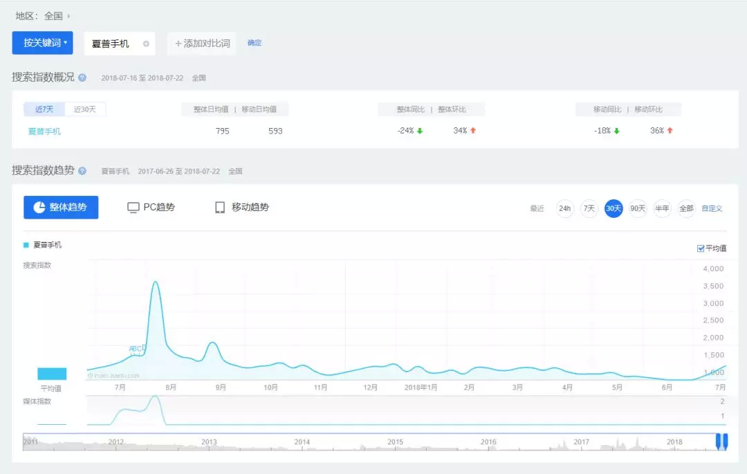 百度指数显示,这次回归之时,“夏普手机”的搜索指数达到了近一年来的巅峰值3384,随后便一路下滑,今年6月份,跌到500左右的最低点。近期稍有回升,则是要归功于其要“退出中国市场”消息的传出。有调侃称,夏普身体力行诠释着“出道即巅峰”。