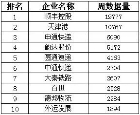 (7月第3周中国物流上市公司综合类排行榜)