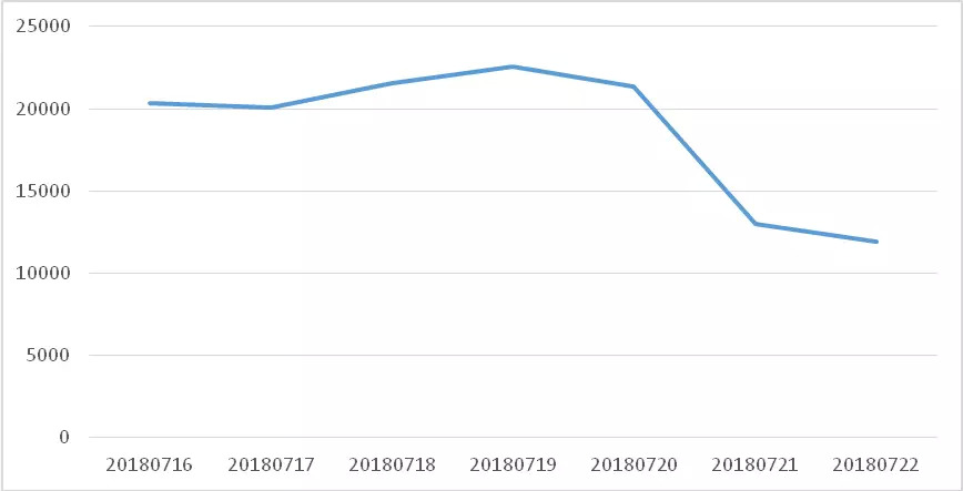 7月第3周共计监测物流上市公司数据130818条,传播趋势周一到周五走势平稳,周六、周日有所下滑。