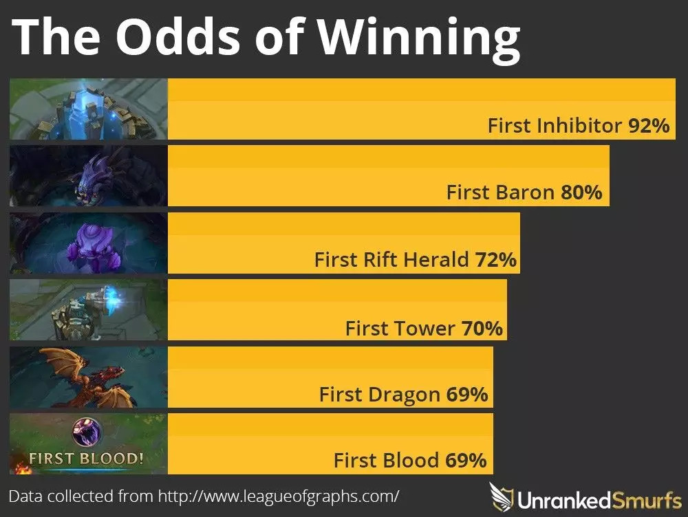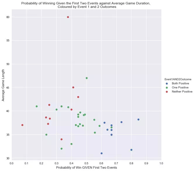 在第一部分中,我们进行了一些介绍性的统计分析。例如,假设队伍在比赛中补到第一个和第二个兵,我们能够计算出获胜的概率,如下图所示。