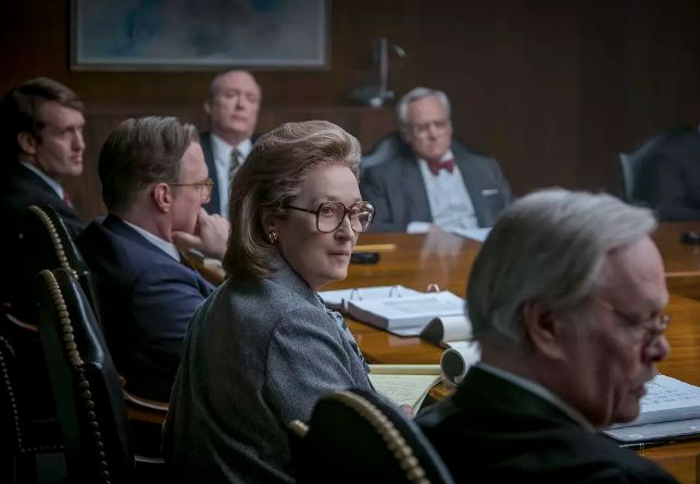 《邮报》中隐藏的另一个张力点来自新闻∕表达自由与平等。这主要体现在梅丽尔·斯特里普扮演的《华盛顿邮报》女老板凯·格雷厄姆这一角色上。拍摄五角大楼文件案,有很多“英雄”和“好人”可供选择:吹哨者埃尔斯伯格、布莱克门和布伦南等自由派大法官、身处一线的编辑记者,甚至给《纽约时报》担任辩护律师的著名法学家亚历山大·毕克尔(Alexander Bickel)。但斯皮尔伯格选择凯,说明他想为老故事找一个新角度——他想在一个关于自由的故事中加入平等的元素。