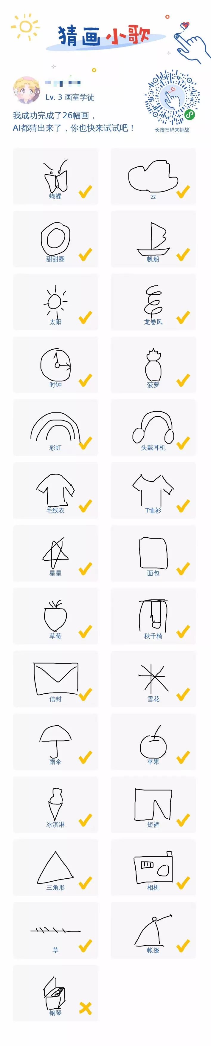 无论你的画功强弱,用户每画出一个词汇,人工智能都能快速识别出来,想想是不是有点细思恐惧。