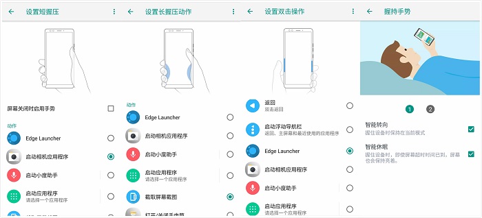 界面新闻记者将短握压设置为唤醒相机,长握压设置为截图,双击设置为Edge Launcher(边框快捷启动)。除了双击边框,短握压和长握压操作都需要使用很大的力气,否则就无法触发操作,多次握压还会导致手指很疼,而且容易误触屏幕产生其他操作。