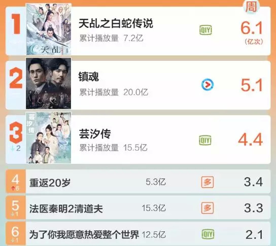 《天乩之白蛇传说》在上线以来,也成为暑期档的首个流量收割大户,在上线后的第一周就拿下了播放量的榜首。