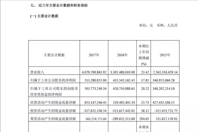 桃李面包(603866.SH)2017年年报显示,实现营业收入约为40.8亿元,相较于2016年33.05亿元,增幅在23%以上;归属于上市公司股东的净利润约为5.13亿元,和2016年4.36亿元相比,增幅在18%左右。