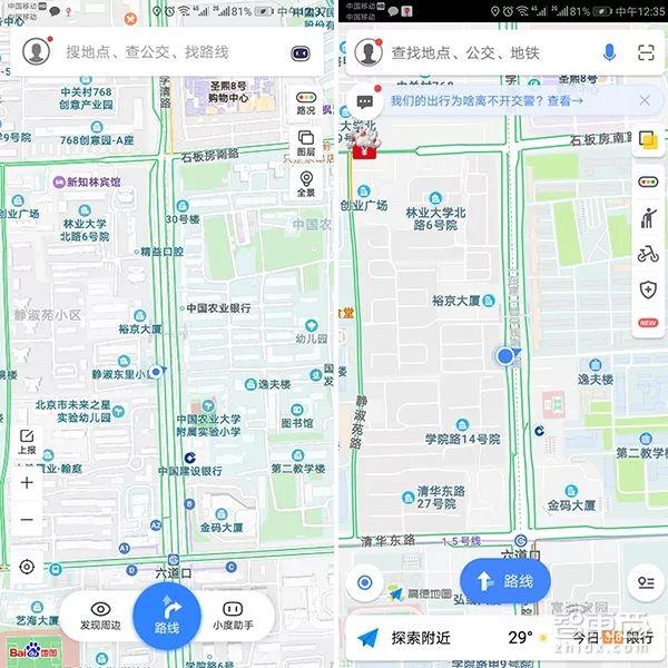 ▲图左为百度地图,图右为高德地图