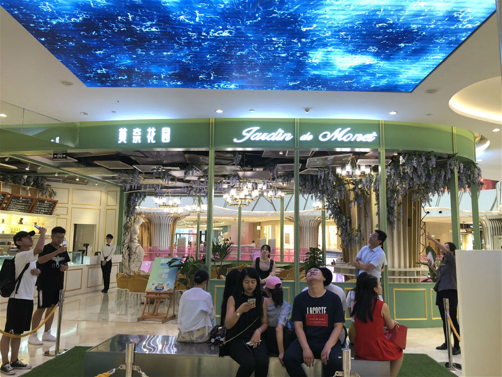 武汉K11 Select定位时髦和轻奢,除了收录Chloe等奢侈品大牌的买手店ATTOS外,这里还原创性地辟出了Coffee Museum、Zona Fresca、Herb Museum三大主题区,以打造5.4万方的“博物馆零售”体验。同时,它还孵化着许多做手工的门店,因此吸引了不少年轻人。而在艺术装置的选择上,《问候》、《看雨》等主题作品都在强调科技互动的体验性,还是全国率先实现全馆LED屏覆盖的购物艺术中心。