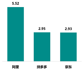 根据公司年报和招股说明书的数据披露,截至2017年,阿里年度活跃用户数为5.52亿,仍然雄踞电商头把交椅,而拼多多的年度活跃用户数为2.95亿,险胜京东2.93亿,坐上综合电商第二把交椅。