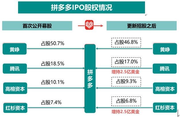 从2015年创立伊始,拼多多经历多轮融资,截止IPO之前,累计融资17亿美金,其中腾讯自B轮之后连续加码进行布局,最新的更新招股说明书中显示,腾讯在本次IPO中再次增资2.5亿美金,战略意图可见一斑。