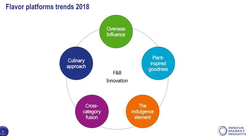 InnovaMarket Insights发布的2018年全球零食风味创新报告,指出了五大趋势: