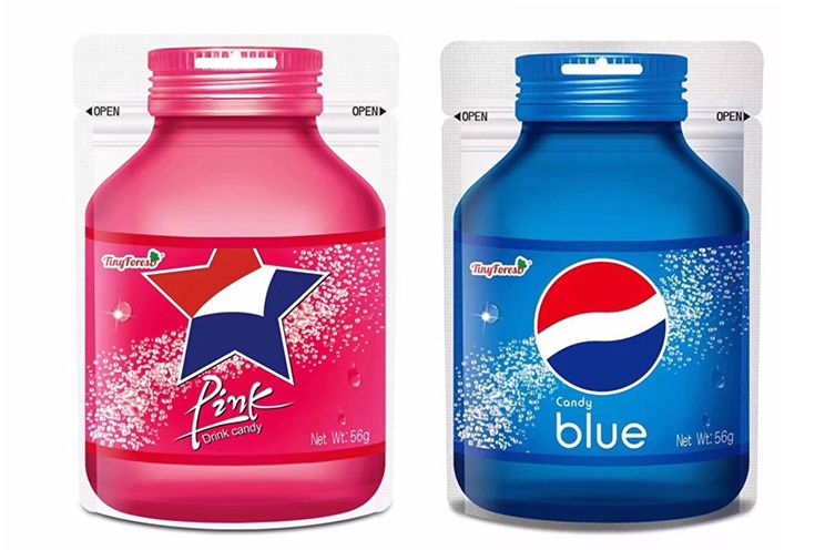 刷屏朋友圈的蓝色可乐和粉色可乐也被应用于软糖中,印尼的恬恬思牌蓝色可乐软糖和粉色可乐软糖凭借萌萌哒颜值吸引了众多粉丝,嚼着吃的可乐让消费者感到乐趣无穷。