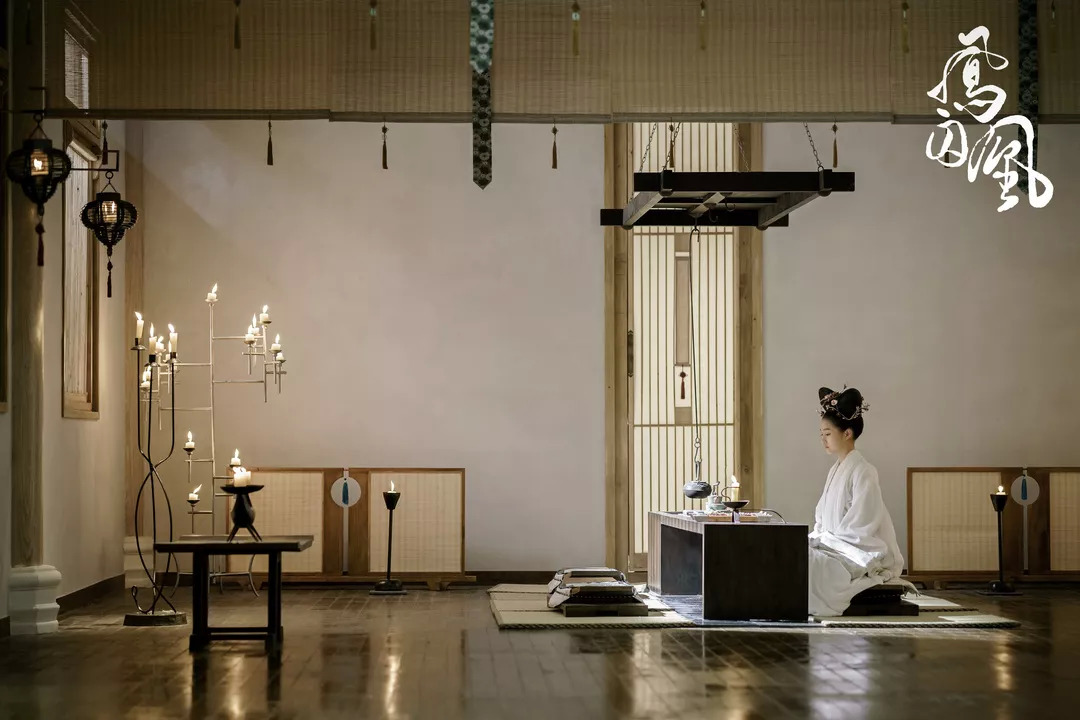 演员演技与故事剧情都彻底扑街的《凤囚凰》,在场景搭建上却有自己的独特秘籍,算得上为数不多的加分项。画面中,白色、米色、原木色等浅色系构成了画面的主要视觉语言,与简单质朴的点线面造型相结合,整个视觉风格相比此前杂乱无章的观感做了减法,反倒呈现出了剧集时代背景的魏晋风流,有了传统中国画的风范。