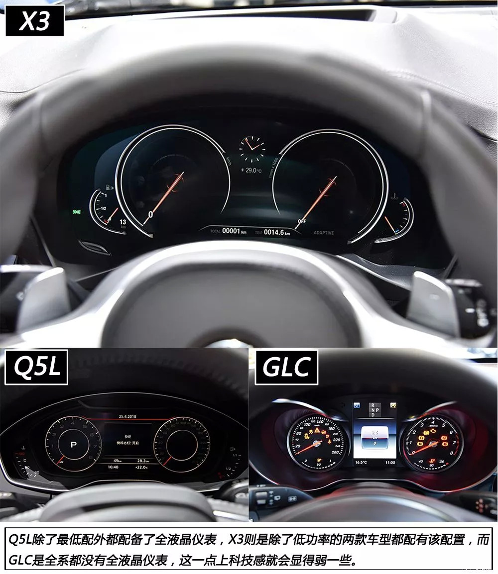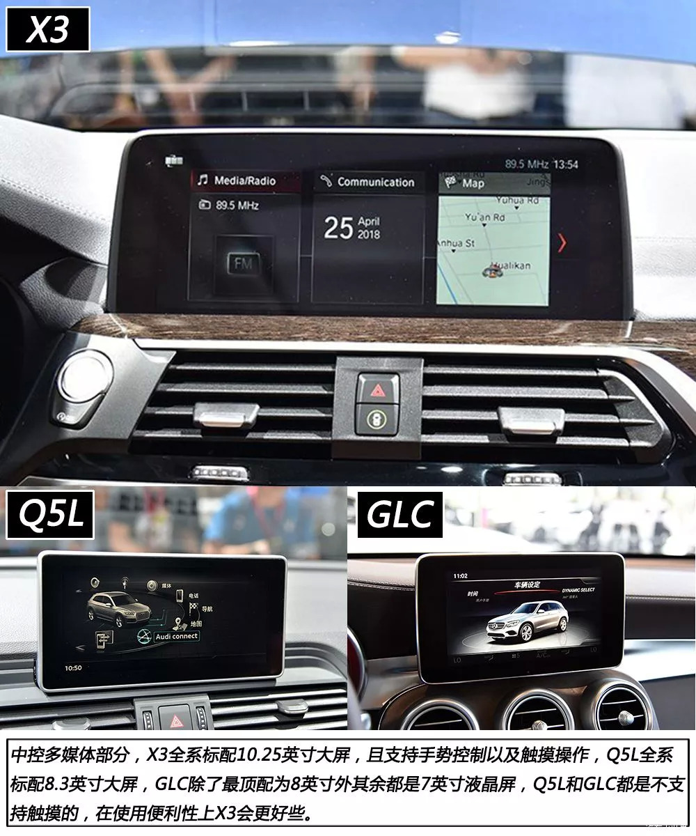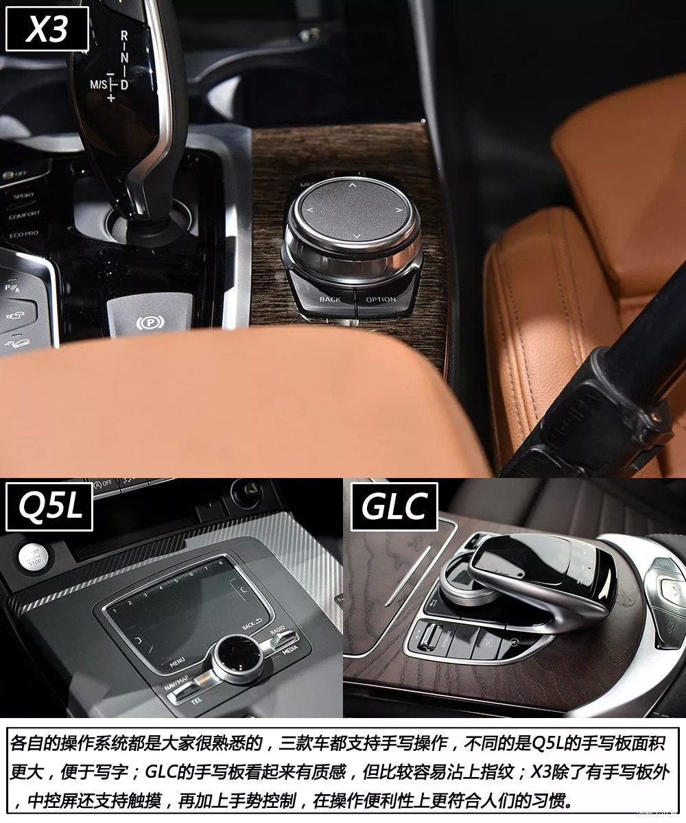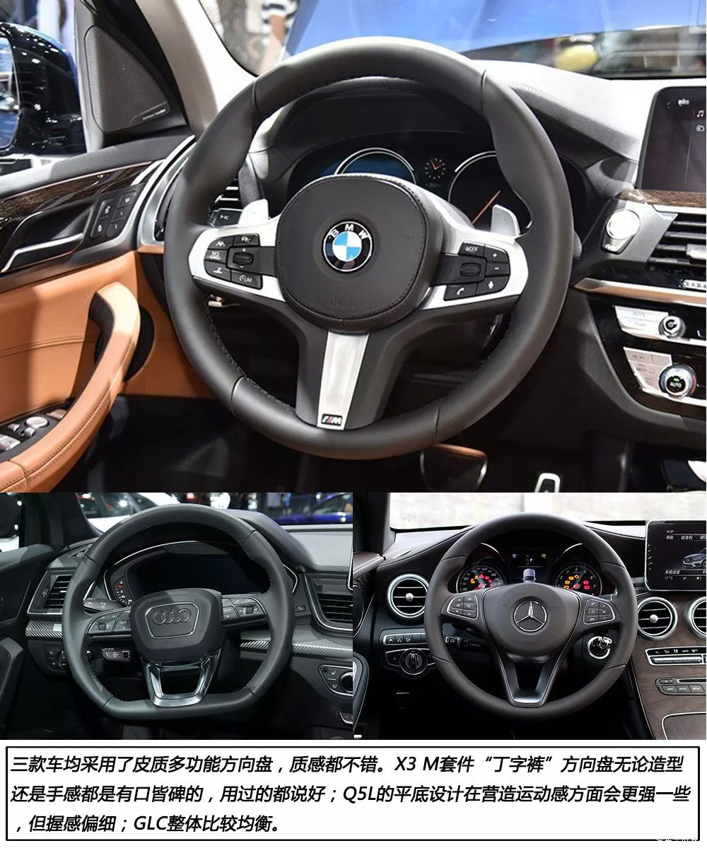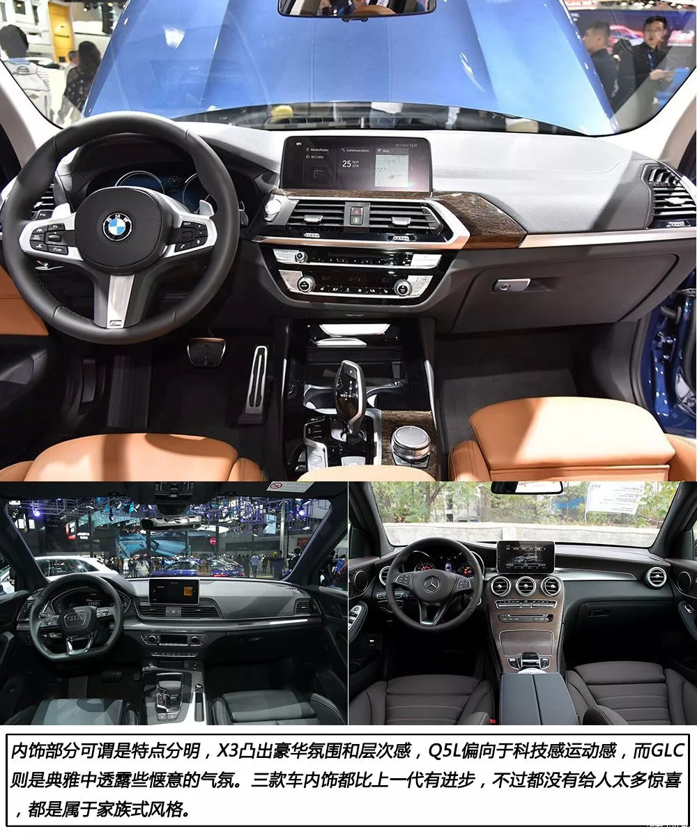 内饰:X3偏向于豪华感,Q5L科技感运动感更强,GLC走典雅路线